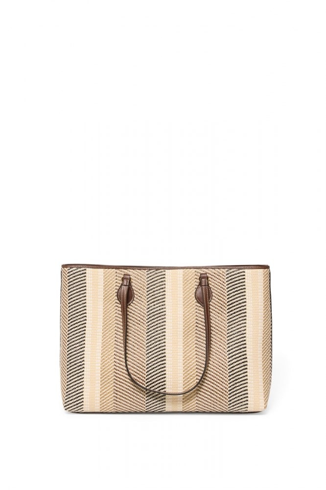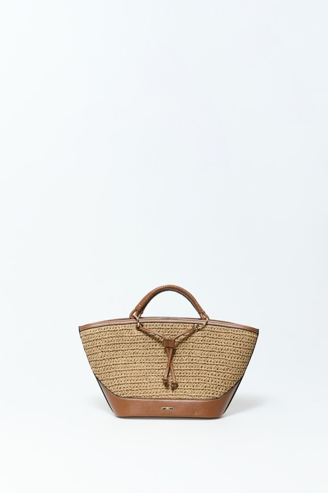 Mixed-media raffia shopper bag