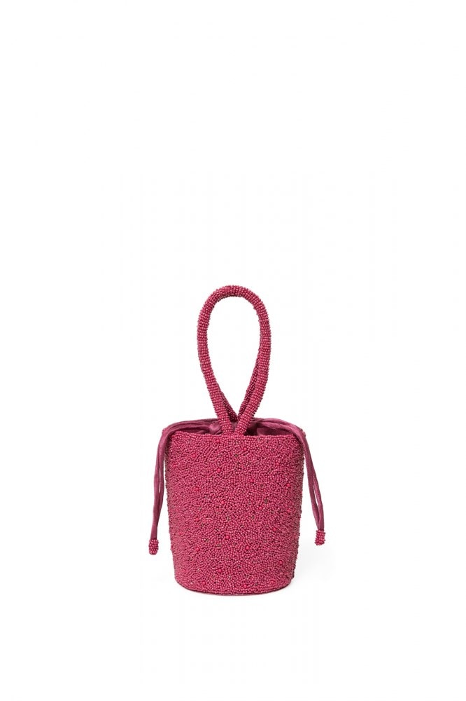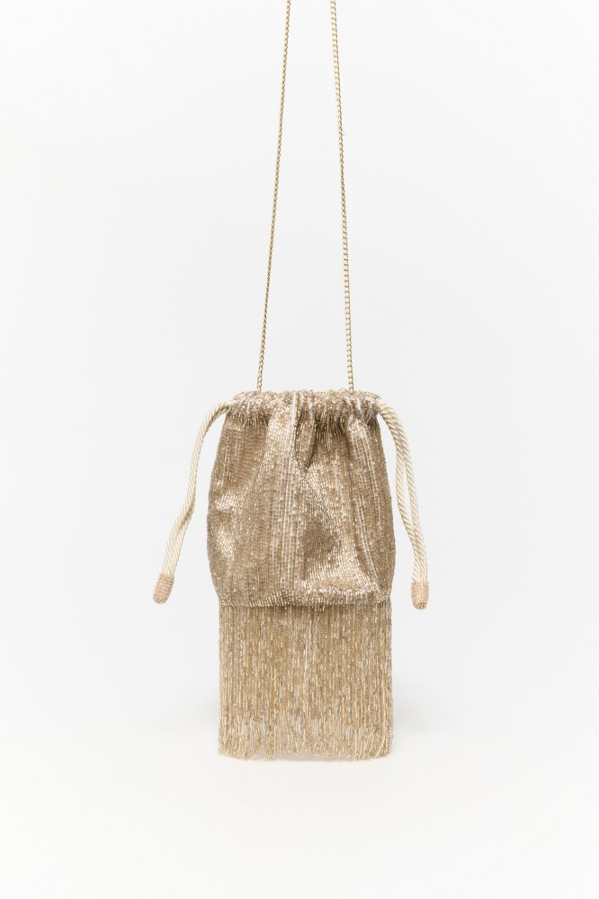 Long fringe beaded bucket bag
