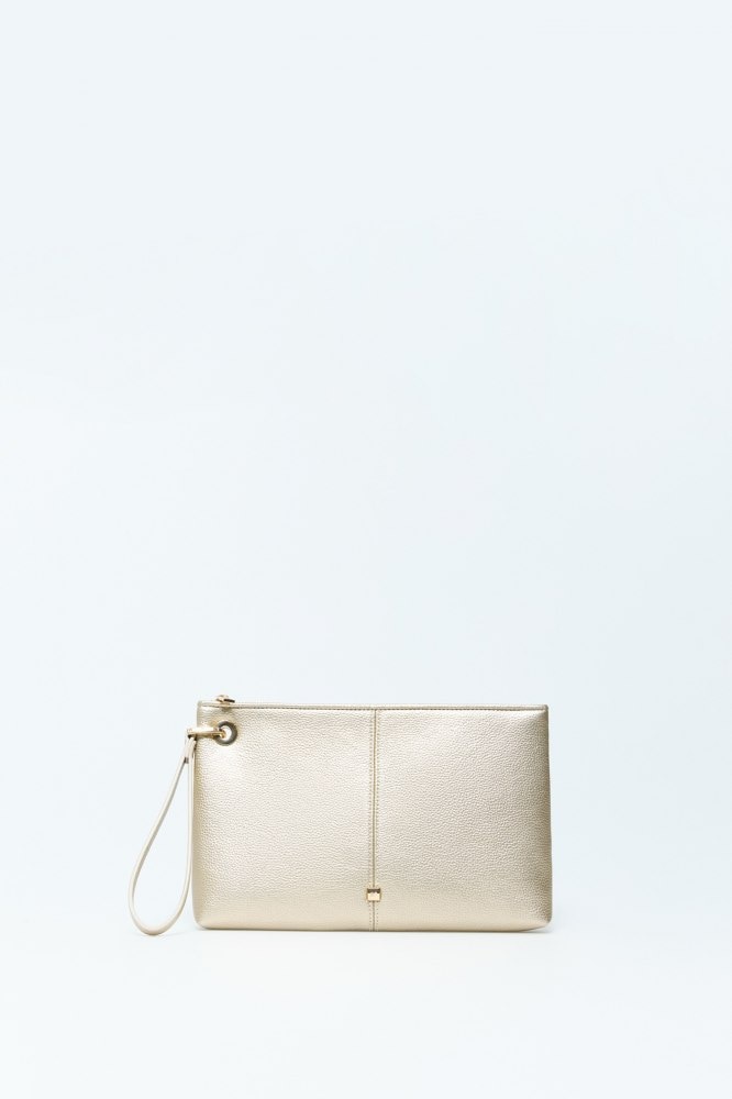 Long silver-tone clutch