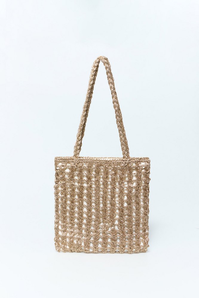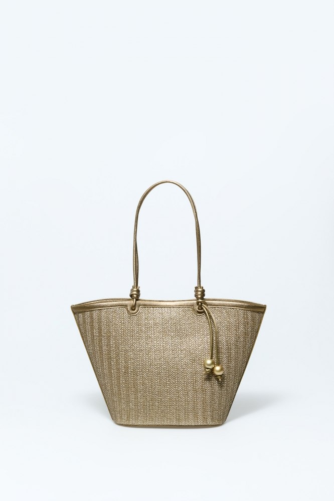 Metallic raffia basket bag