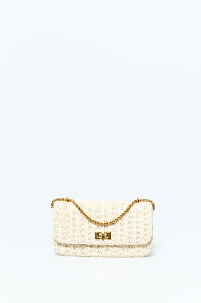 Twist-lock clasp raffia crossbody bag