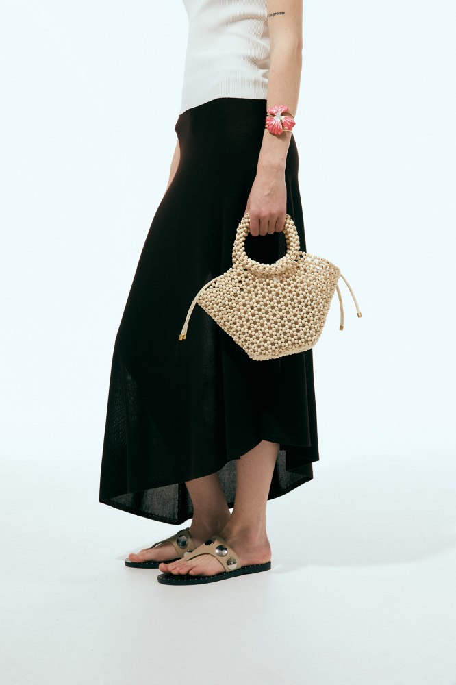 Beaded basket-style handbag