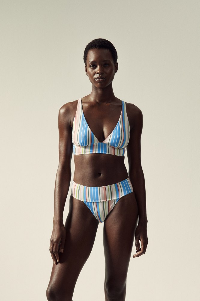 Striped double strap bikini briefs